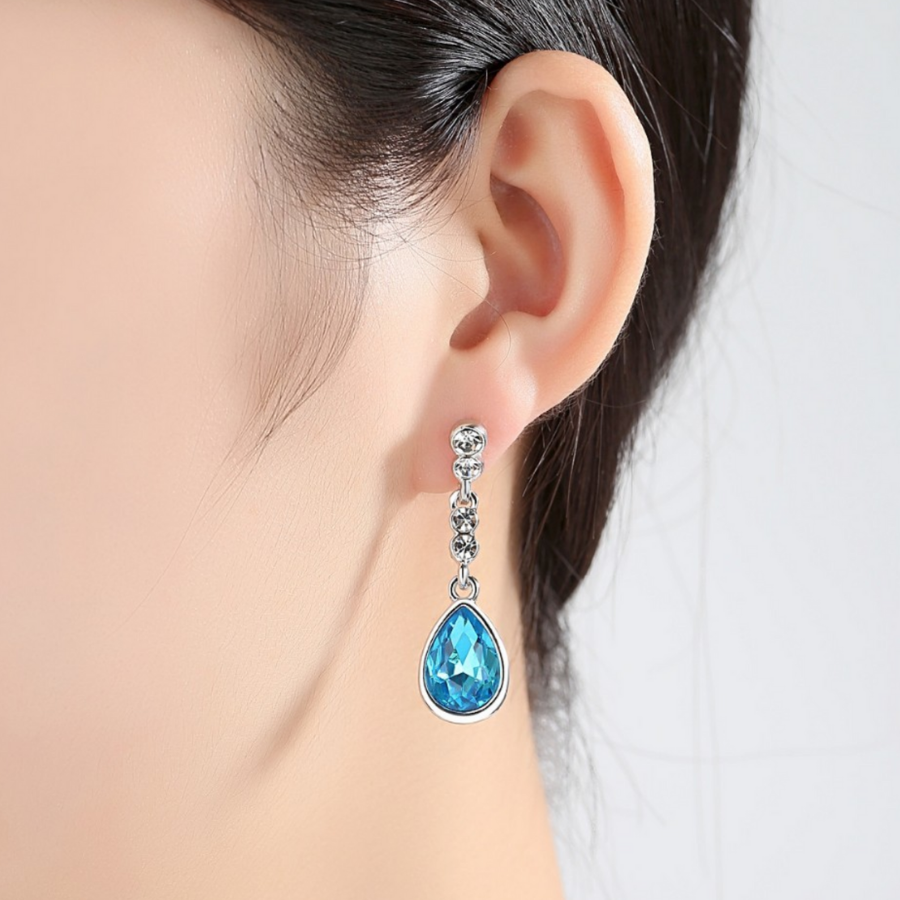 These beautiful earrings are platinum plated with teardrop shaped and clear crystals dangling down to...